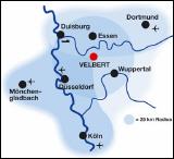 Autobahnartig ausgebaute Schnellstrassen (B224n und B227n) verbinden Velbert mit dem Autobahnnetz (A46, A3 und A56). Die Städte Essen und Wuppertal sind so in etwa 15-20 Minuten zu erreichen. Der Ausbau der A44 nach Düsseldorf - noch in dieser Dekade - hat sehr gute Chancen. |
